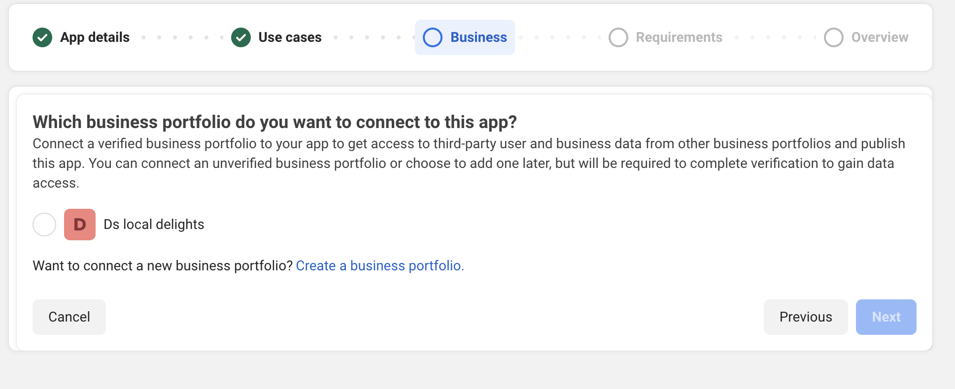 Select the business portfolio or create a new one