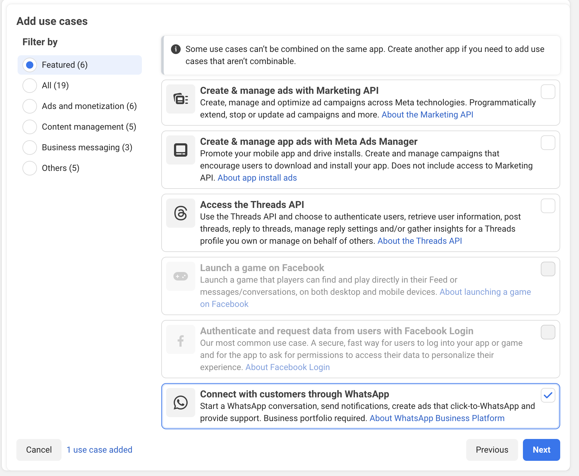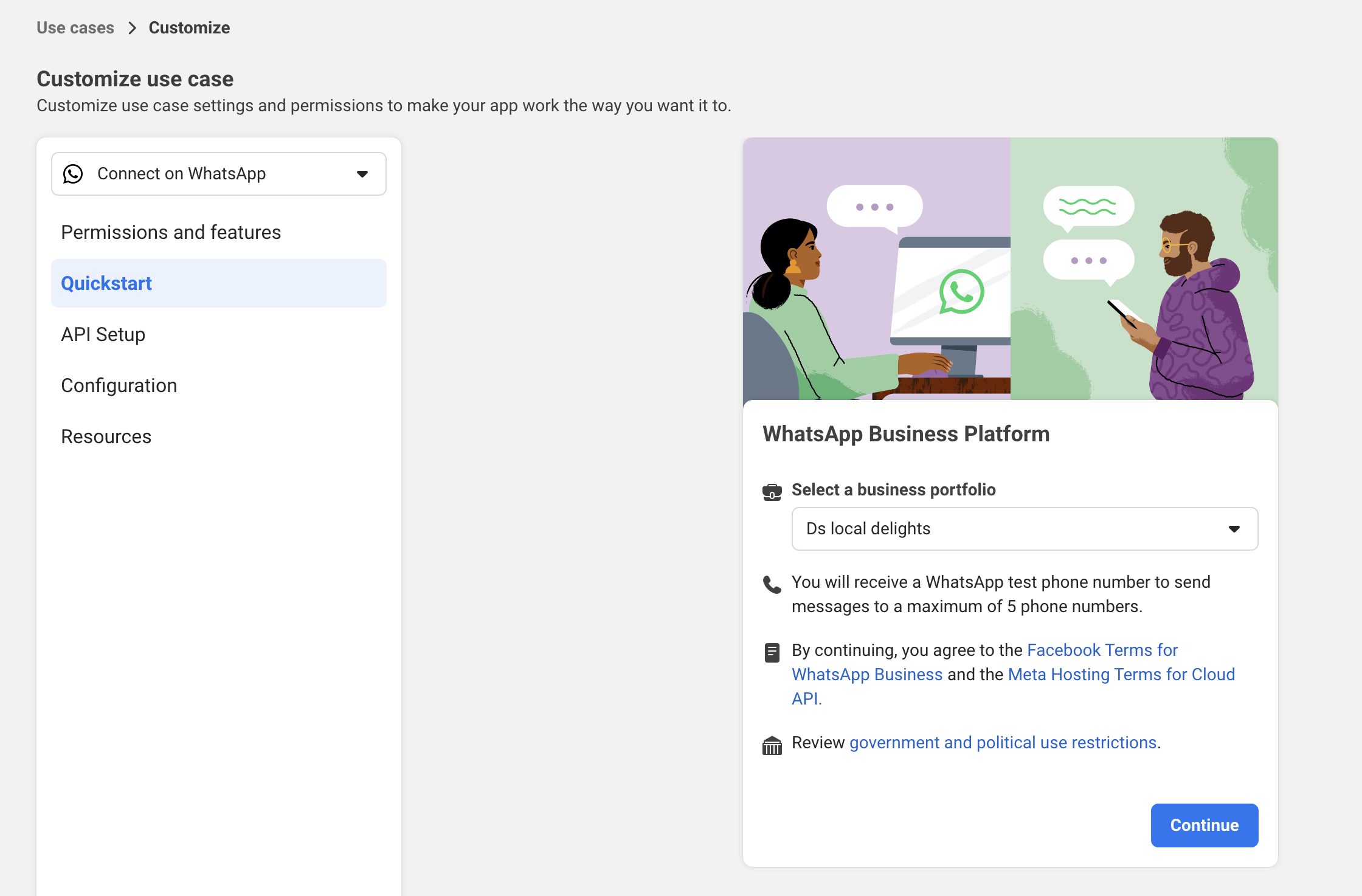 Add your usecase - Select 'connect with customers through WhatsApp'