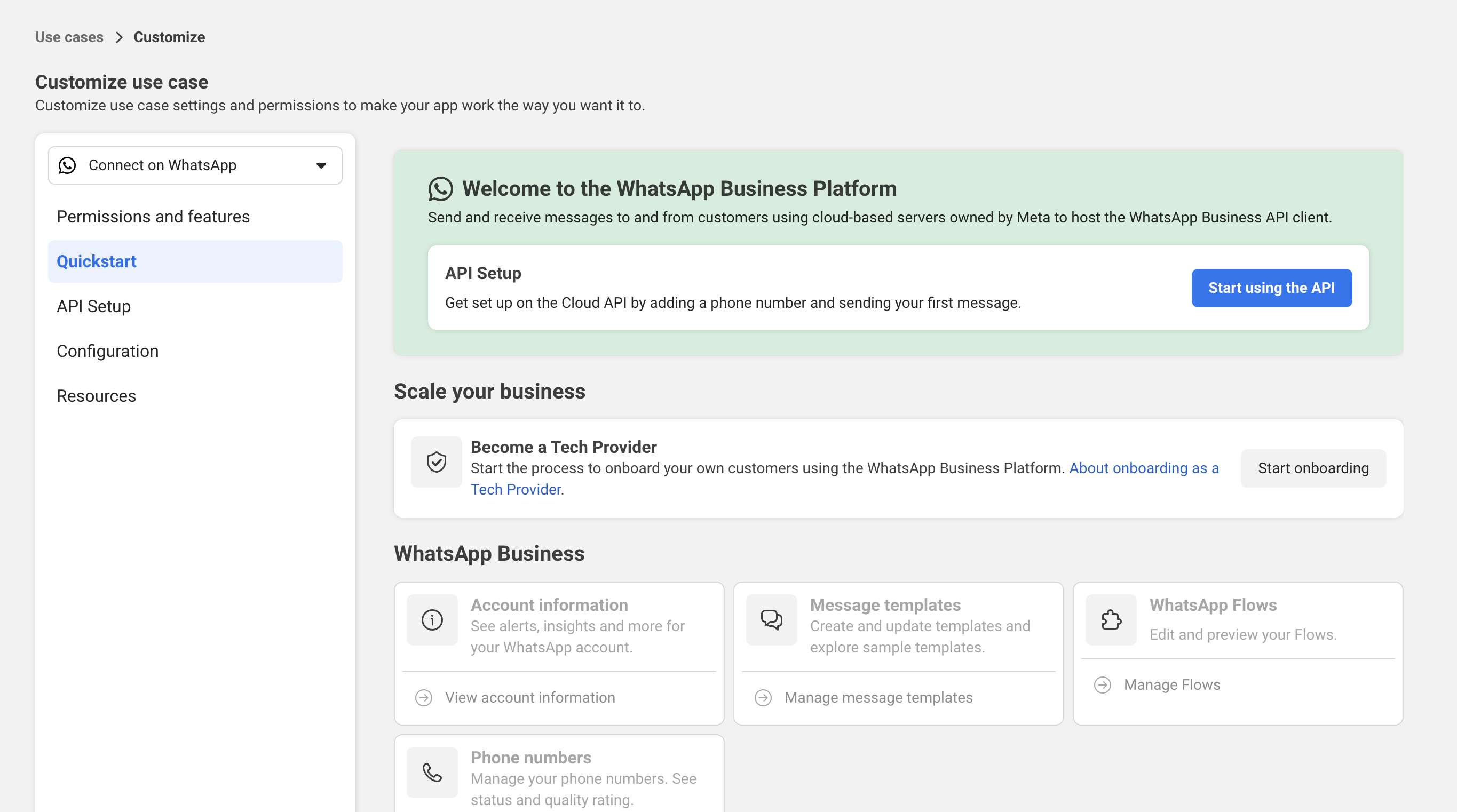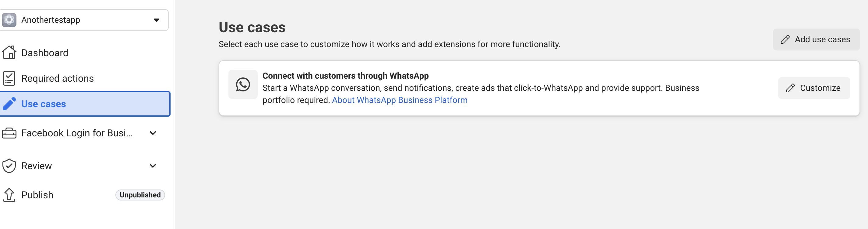In the Meta App Dashboard go to Use cases > Customize (pencil icon) and click the Customize button for the WhatsApp use case